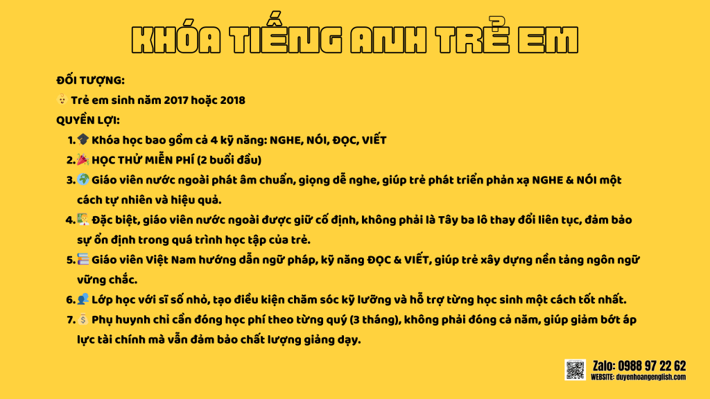 - 📚 Giáo viên Việt Nam hướng dẫn ngữ pháp, kỹ năng ĐỌC & VIẾT, giúp trẻ xây dựng nền tảng ngôn ngữ vững chắc.