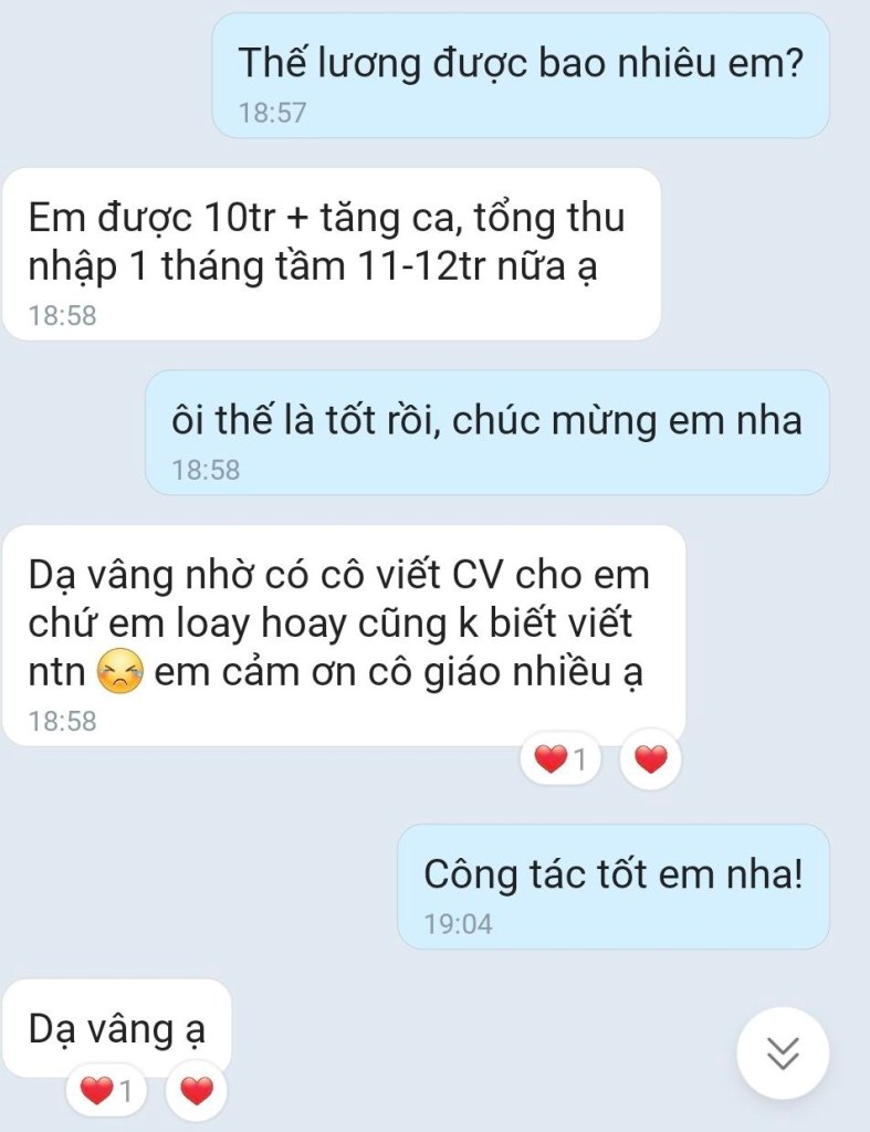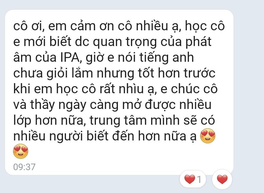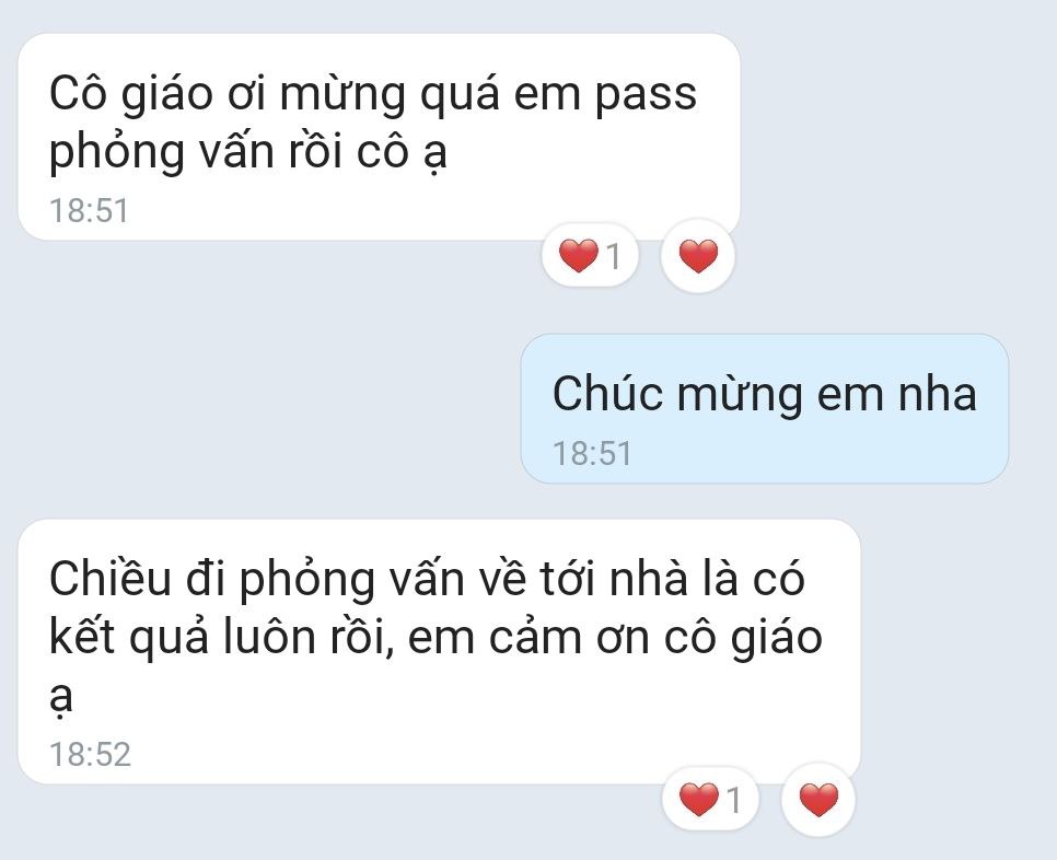 Cô ơi em pass cả 3 LG rồi ạ: LGI, LGD, LGE. Nhờ cô mà em mới tự tin chém tiếng Anh bay phần phật như vậy.